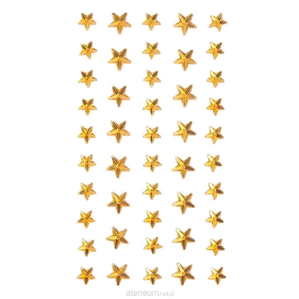Kryształki samoprzylepne w kształcie gwiazdek to piękny dodatek do projektów kreatywnych na rozmaite okazje. Opakowanie zawiera złote gwiazdki w dwóch rozmiarach.