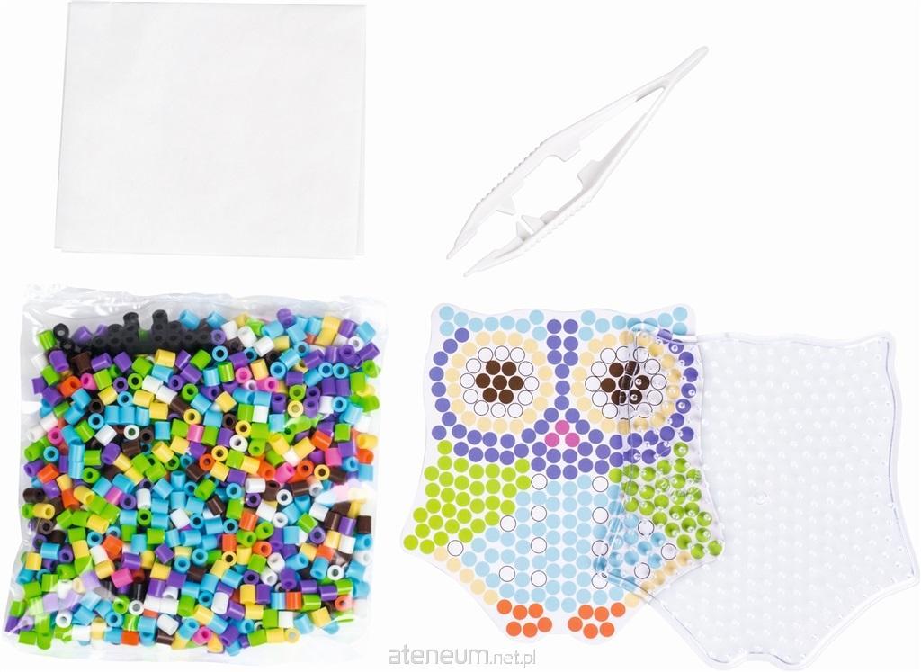 Opakowanie zawiera koraliki do zaprasowywania, z których można wykonać dwa motywy na dołączonej podkładce. Zestaw zawiera również pęsetę, papier do zaprasowywania oraz instrukcję.