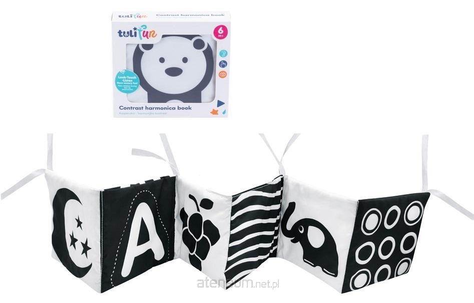 Materiałowa książeczka kryje w sobie wiele kontrastowych obrazków, które stymulują zmysł wzroku malucha. Posiada ona dwie strony do zabawy, a na jednej z nich znajdziemy także ukryte w kwiatku bezpieczne lusterko do samopoznania dziecka. Książeczka - harmonijka wykonana została z szeleszczącego materiału, co stymuluje zmysł dotyku i słuchu najmłodszych. Praktyczne troczki pozwolą przymocować książeczkę do szczebelków dziecięcego łóżeczka.
