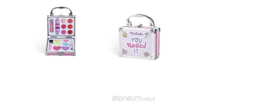 Zestaw kosmetyków dla dzieci w mini walizce zawiera 6 cieni do powiek, 6 błyszczyków, 1 szminka, 2 pierścienie, 1 pędzel, 1 aplikator.