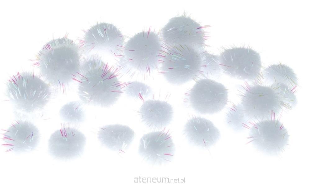 Pompony metalizowane rozmiar: 20 mm ilość: 40 szt kolor: biały