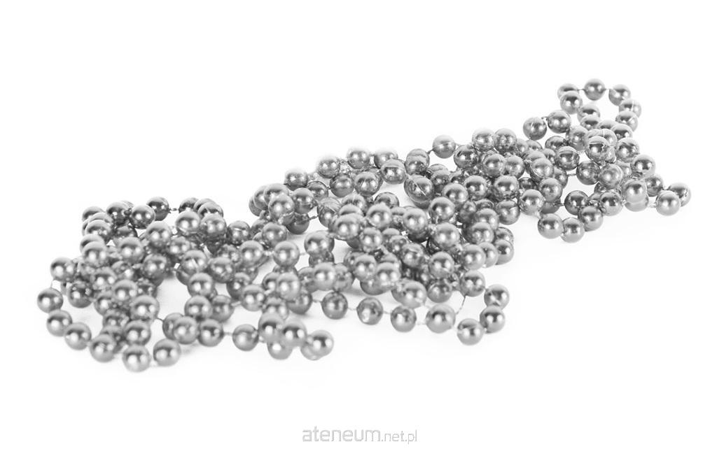 Łańcuch perełki - dekoracja choinkowa, długość ok. 270 cm. Średnica jednej perełki ok. 8 mm. Kolor srebrny.