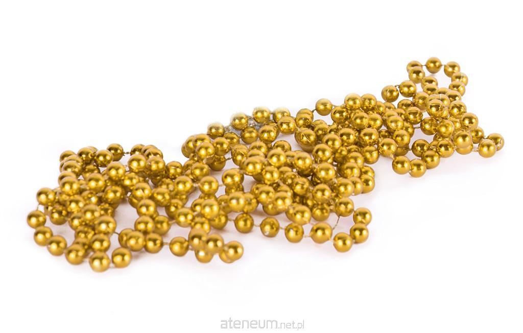 Łańcuch perełki - dekoracja choinkowa, długość ok. 270 cm. Średnica jednej perełki ok. 8 mm. Kolor złoty.
