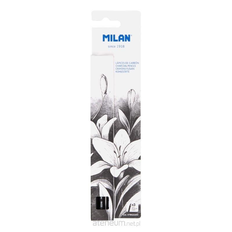 Zestaw ołówków MILAN Art do rysowania węglem. Okrągłe ołówki o grubości O 4 mm. Kartonowe opakowanie zawiera 3 sztuki o różnej twardości (miękka, średnia i twarda) dla różnych intensywności pociągnięć.