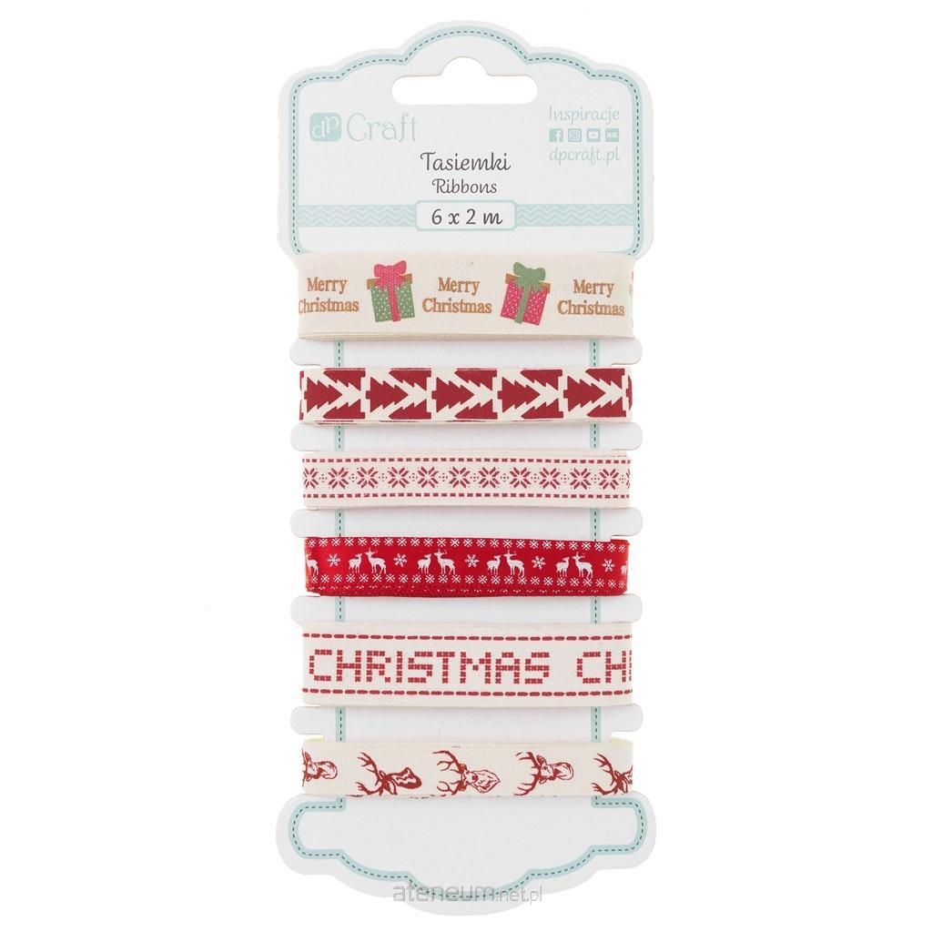 Zestaw bawełnianych tasiemek w kremowo-czerwonych kolorach z motywami reniferów, choinek, prezentów, świątecznych napisów i ozdobnych wzorów. Tasiemki Scandi Christamas będą prezentować się pięknie przy projektach w stylu skandynawskim, vintage, eko i