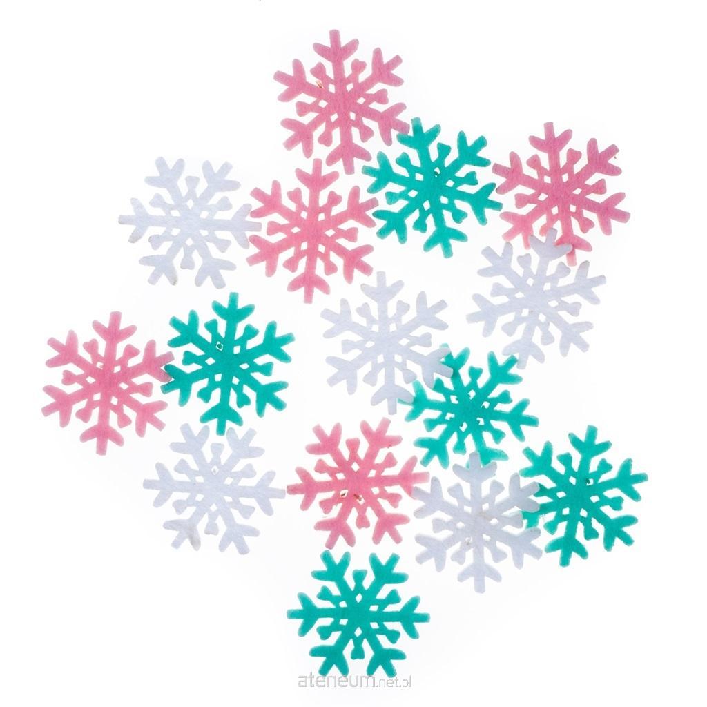 Samoprzylepne filcowe śnieżynki w trzech słodkich odcieniach: bieli, różu i mięcie.