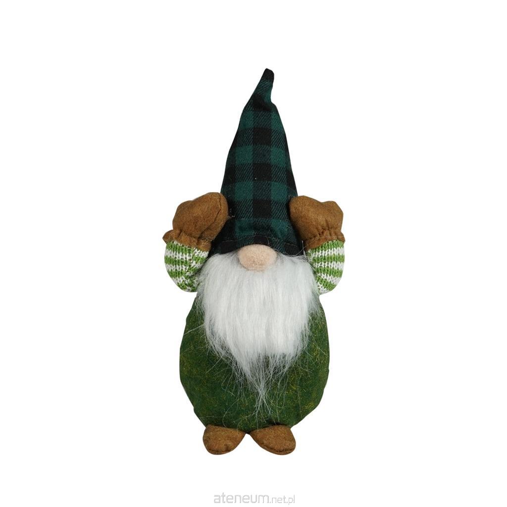 Dekoracja zimowa w kształcie nieśmiałego skrzata. Wykonany z miękkiego filcu i materiału. Dół dekoracji został obciążony, aby umożliwić stabilne postawienie ozdoby. To uroczy świąteczny skrzat w kolorze zielonym w kraciastej czapce z puchatą brodą. Idealna ozdoba do domu lub pomysł na upominek. Skrzat o wysokości 21 cm.