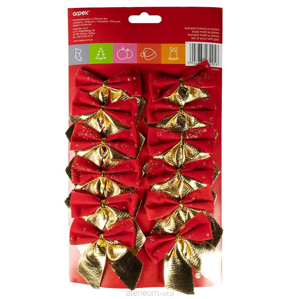 Dekoracje bożonarodzeniowe, Ozdoba świąteczna - komplet kokard ze złotem 12 sztuk na blistrze. Wymiar kokardki: 7 x 7,5 cm.