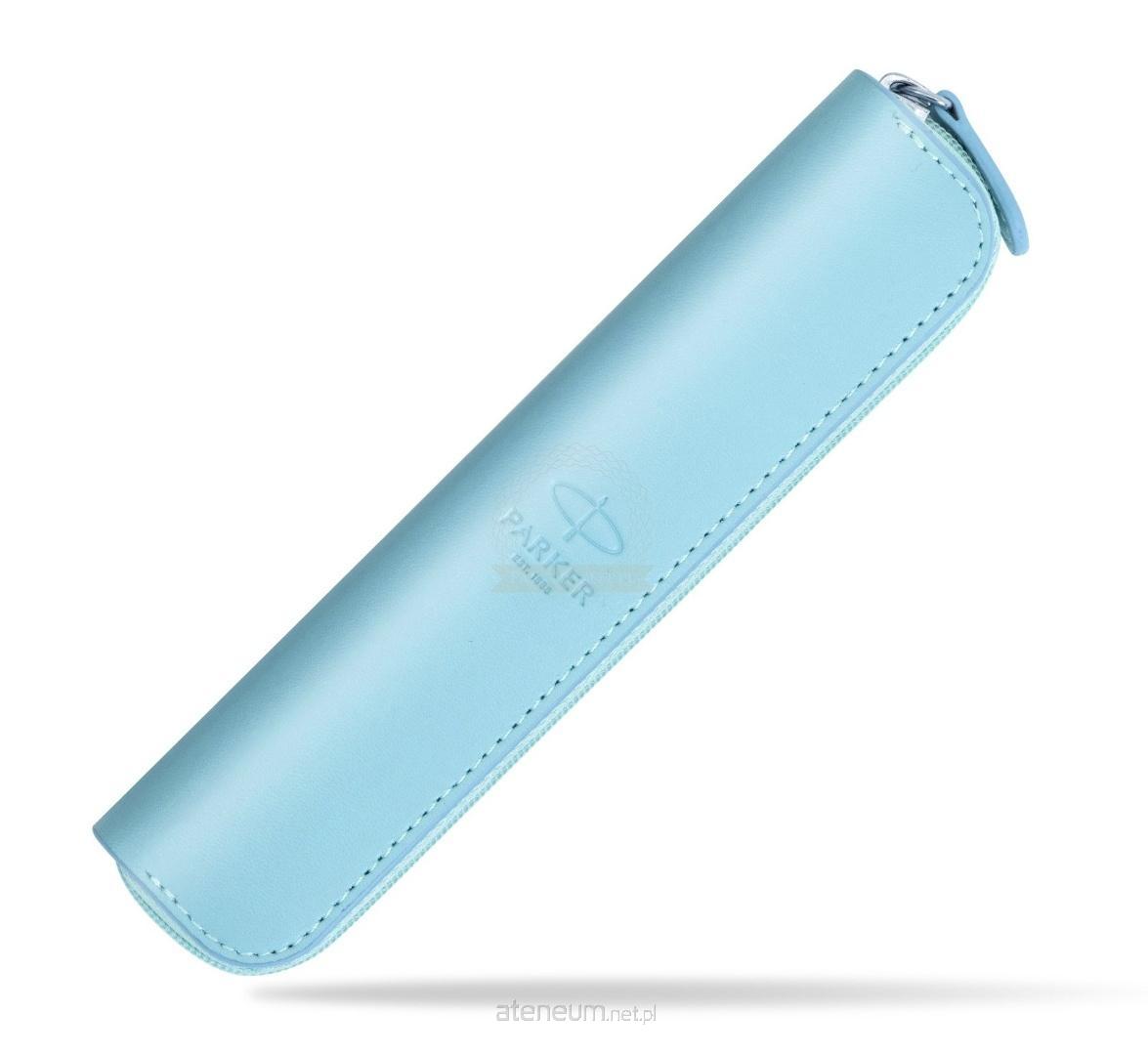 Etui Parker wykonane ze skóry w odcieniu delikatnego koloru niebieskiego. Etui przeznaczone na pojedynczy produkt. Zapinane na zamek błyskawiczny. Wymiary: 160 mm x 36 mm x 17 mm