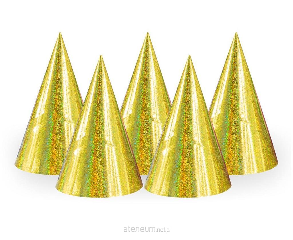 PAPIEROWE CZAPECZKI URODZINOWE, HOLOGRAFICZNE, ZŁOTE