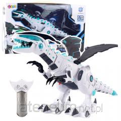 Dinozaur Zdalnie Sterowany Światła Dźwięki Zielony Dinozaur Zdalnie Sterowany w kolorze zielonym to dynamiczny dinozaur działający na 3 baterie 1.5V AA (brak w zestawie, wkładane do ogona), co sprawia, że zachowuje się realistycznie. Emituje czerwone światło i wydaje charakterystyczne dźwięki dinozaura, co sprawie, że jest on groźny. Na głowie dinozaura znajduje się otwór, do którego można wlać wodę, dzięki dołączonej do zestawu butelce. Za pomocą przycisku na pilocie (działa na 2 baterie AA - brak w zestawie) możesz puszczać parę wodną przez jego buzię, emitującą zianie ogniem. W zestawie znajdziesz także pilot w formie bloku z dinozaurem, który umożliwia sterowanie jego ruchami do przodu. Wymiary dinozaura wynoszą 32 cm x 20 cm x 8 cm, a pilota 10 cm x 15 cm x 3 cm. Całość zapakowana jest w opakowanie o wymiarach 27 cm x 23 cm x 11 cm. To doskonała zabawka, która zapewni rozrywkę i edukację dla małych pasjonatów dinozaurów i nauki. Wymiary opakowania: 27 cm x 23 cm x 11 cm Posiada certyfikat CE, ponadto jest zgodny z normą EN71. Zabawka przeznaczona jest dla dzieci powyżej 3 roku życia.