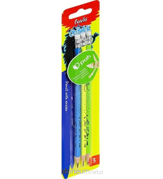 Ołówek z gumką trójkątny HB neonowy 6szt