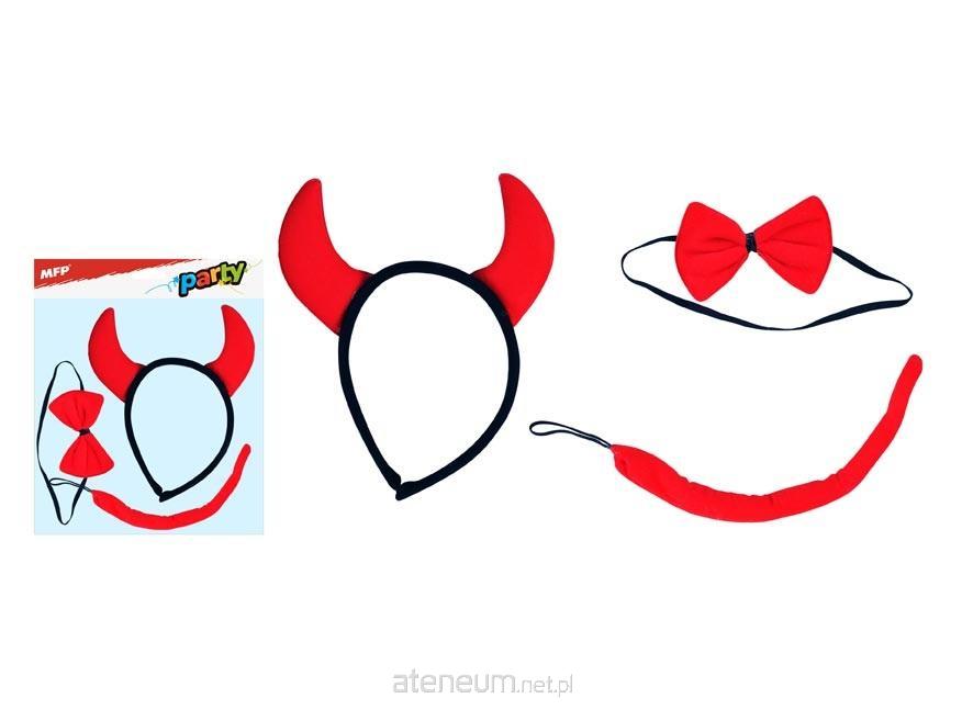 Maska dziecięca diabełek . Opakowanie zawiera opaskę z uszami, muszkę na gumce oraz ogon na gumce.