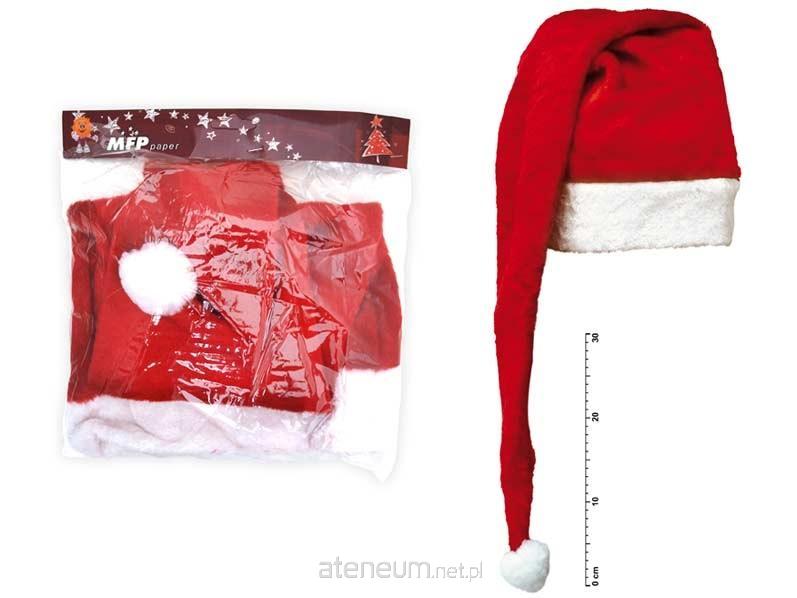 Czapka Mikołaja - długa w kolorach czerwonym i białym. Doskonałe uzupełnienie stroju Świętego Mikołaja. Zapakowana w worek z zawieszką euro. Obwód głowy: 58 cm Długość czapki z pomponem: 90 cm