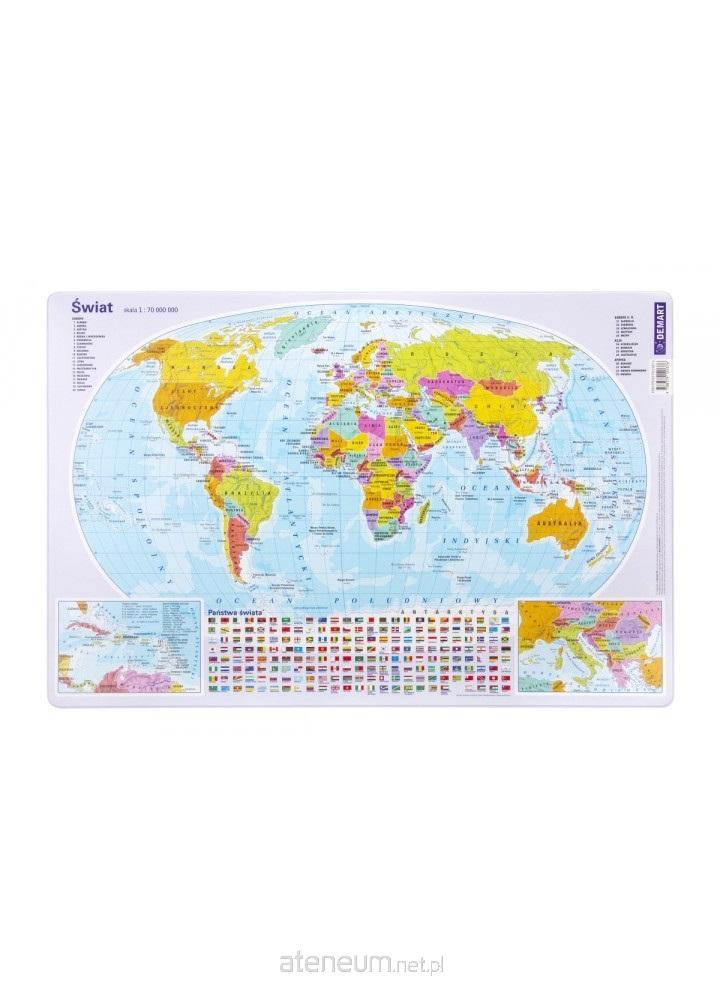 Mapa świata z podziałem politycznym jest wykonana w skali 1:70 000 000.