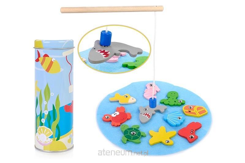 W zestawie: metalowy pojemnik na rybki, 2 wędki z magnesem, plansza, 10 rybek, wym. Opk: 6,2 x 6,2 x 16,6 cm., 3+