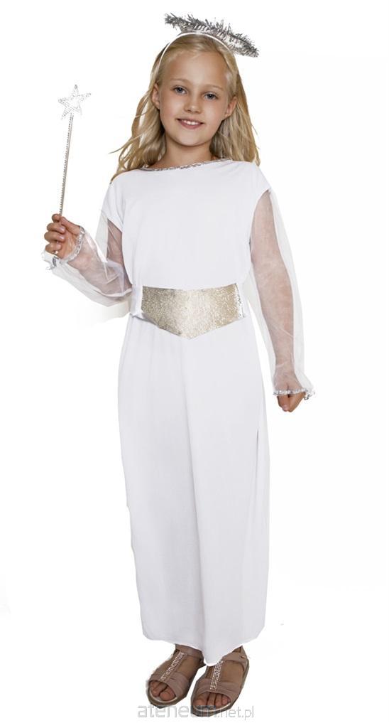 Komplet zawiera długą sukienkę, aureolę oraz pasek. Idealny na jasełka oraz imprezę tematyczną. Rozmiar: S (110-120 cm)