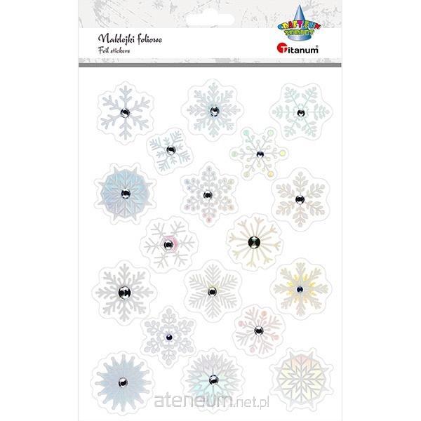 Naklejki foliowe płatki śniegu białe z kryształkiem mix rozmiarów 18 szt.