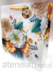 Torebka ozdobna matowa 26x32x12cm białe kwiaty
