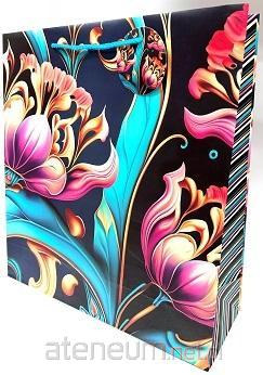 Torebka ozdobna matowa 35x37x12cm ciemne kwiaty