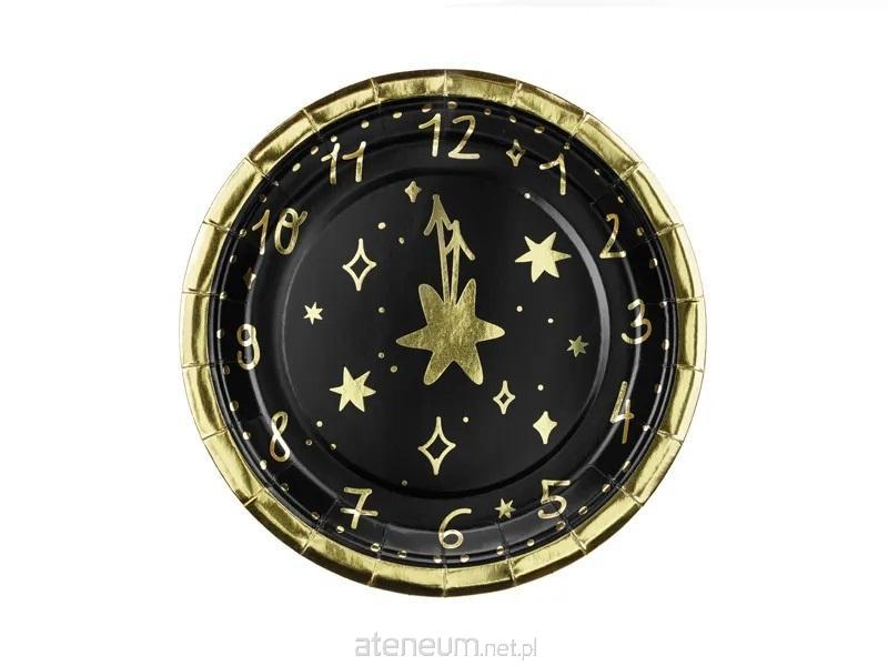 Talerzyki papierowe Zegar w kolorze czarnym ze złotym nadrukiem, wymiary ok. 18 cm.(1 op. / 6 szt.)