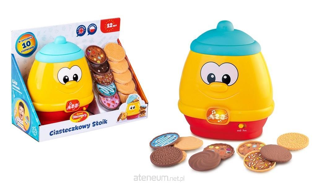 Słoiczek - łakomczuszek potrzebuje ciasteczek! Zabawka głośno liczy wrzucane do środka zabawkowe ciastka, od 1 do 10. Gdy maluch poradzi sobie z tym zadaniem, może otworzyć klapkę, znajdującą się z tyłu słoika, aby wyjąć smakołyki i rozpocząć zabawę od nowa. Gdy naciśniemy przycisk z nutkami, zaświeci się on, a słoiczek zaśpiewa wesołą piosenkę o ciasteczkach. Zabawka jest dwujęzyczna, więc gdy dziecko opanuje już liczenie w języku polskim, może przełączyć się na zabawę w języku angielskim. Produkt przeznaczony jest dla dzieci od 12 miesiąca życia