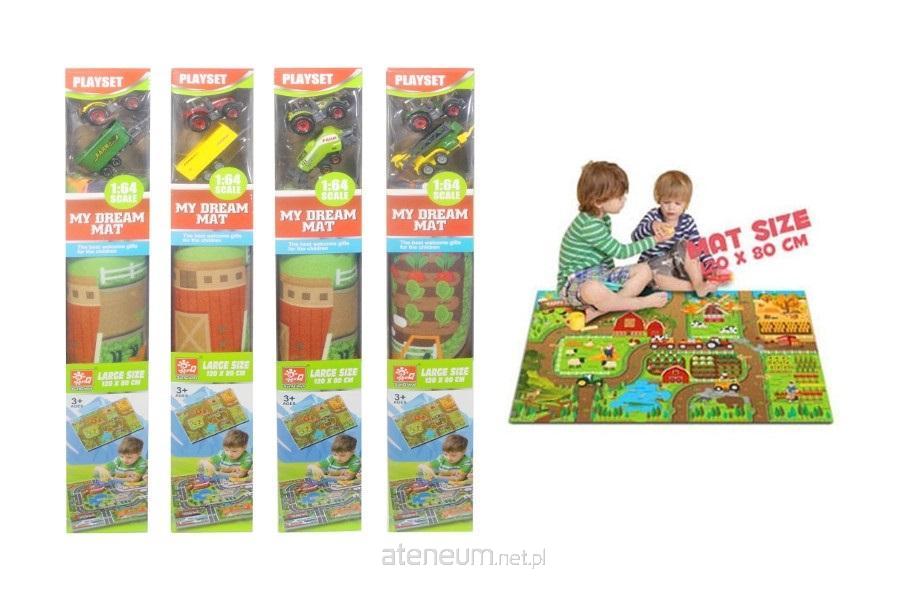 Filcowa mata do zabawy przedstawiająca farmę. Dzieci mogą jeździć po niej pojazdami rolniczymi (dołączone do zestawu), a także dodawać inne elementy dla urozmaicenia zabawy. Wymiary maty po rozłożeniu to 1.2 m x 0.8 m. #&Produkt zapakowany w kartonowe opakowanie z okienkiem.#&Podane wymairy są wymiarami opakowania. #&Produkt dla dzieci od 3 lat.