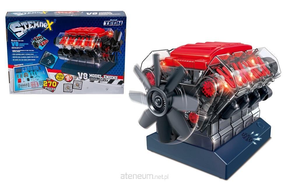Dowiedz się jak działa silnik 4-suwowy i zbuduj go samodzielnie! Duży zestaw składa się z aż 270 elementów, które, odpowiednio ze sobą połączone, stworzą model silnika V8. Kiedy umieścisz w nim baterie (niezawarte w zestawie), silnik uruchomi się, wydając przy tym realistyczne odgłosy! Obserwuj jego pracę i ucz się poprzez zabawę.