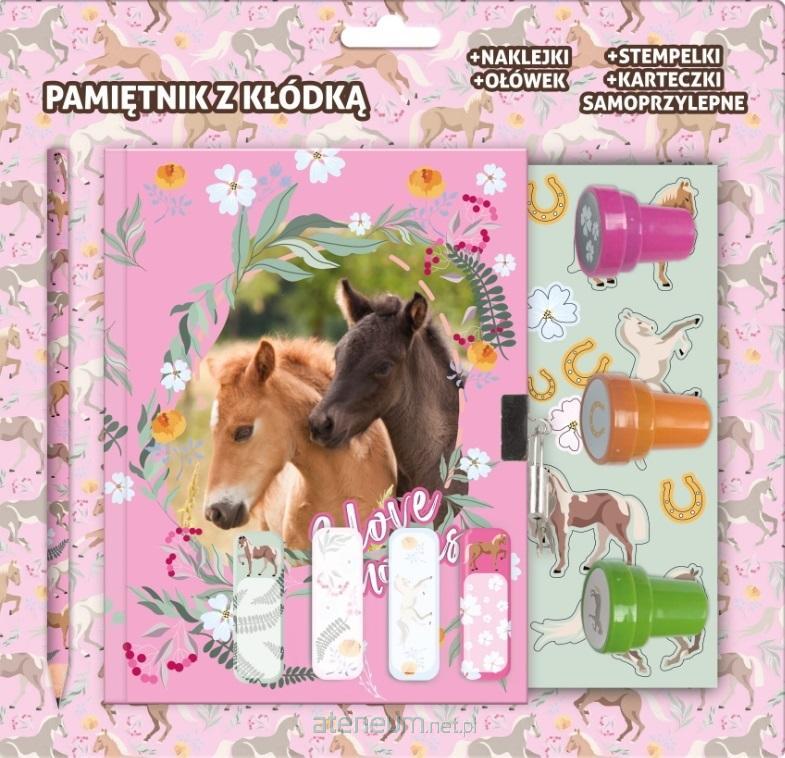 Pamiętnik z kłódką i stempelkami + zestaw przyborów Konie 24 DERFORM