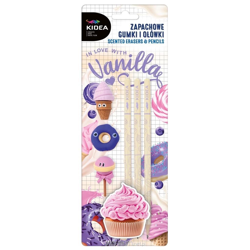 Zapachowy niezbędnik Kidea o słodkim, waniliowym aromacie, który zawiera 3 ołówki o twardości rysika HB oraz trzy smakowite gumki w kształcie loda, donuta i lizaka. Średniej twardości rysik i trójkątny kształt sprawiają, że ołówki są poręczne i wygodne w użyciu. Zapachowe gumki nie tylko słodko się prezentują, ale również precyzyjnie wymazują ołówek. Sprawdzi się zarówno na lekcji matematyki jak i plastyki, a jego czekoladowy zapach umili dzień spędzony w szkolnej ławce.