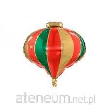 Matowy balon foliowy Bombka w kolorze czerwonym z zielonym i metalizowanym złotym nadrukiem, wymiary ok. 51 x 49 cm (20 x 19 '').