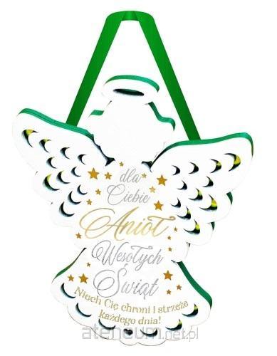 awieszka od serca w formie Aniołka to niezapomniany pomysł na prezent na Boże Narodzenie. Wykonana z solidnej płyty MDF z wyżłobionymi lustrzanymi zdobieniami i napisami z krótką sentencją Na tylnej ściance Aniołka jest tasiemka do zawieszenia na ścianie. Cechy szczególne: typ: zawieszka do powieszenia wielkość orientacyjna: wysokość: 14 cm, szerokość: 12,5cm (skrzydła), grubość: 7mm zdobienie: wzory wyżłobione w drewnie z lustrzaną folią, kolorowy napis okazja: Boże Narodzenie