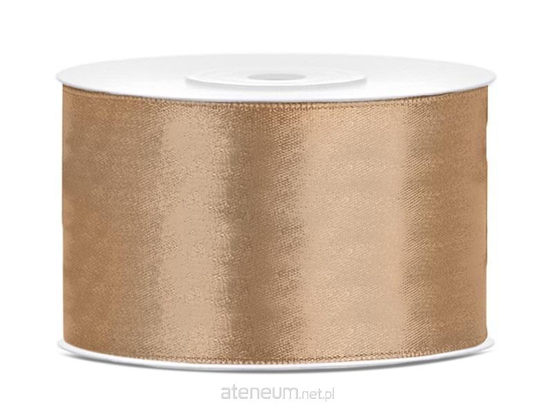Tasiemka satynowa w kolorze jasnozłotym, szerokość 38 milimetrów, długość 25 metrów.(1 szt. / 25 mb.)
