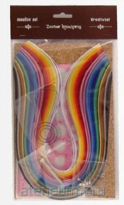 Zestaw zawiera szablon do quillingu wielkości 21x10,5 cm z 27 otworami kołowymi o średnicach 2-40 mm, podkład korkowy do quillingu wielkości 25x15,5 cm , nawijak metalowy do quillingu , 6 szpilek do quillingu , 280 pasków do quillingu w 28 kolorach, specjalną nakładkę do quillingu oraz kolorową instrukcję w języku polskim