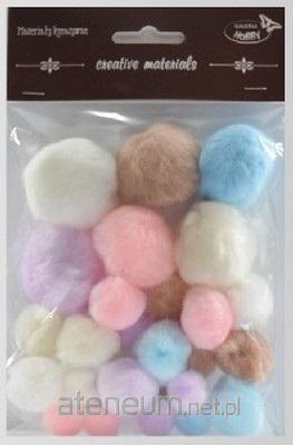 Miękkie i puszyste pompony akrylowe w pięknych, intensywnych kolorach. Opakowanie zawiera miks 30 szt. pomponów wielkości 25-40 mm w kolorystyce pastelowej.