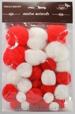 Pompony tonacyjne biało czerwone 15-40mm 30szt