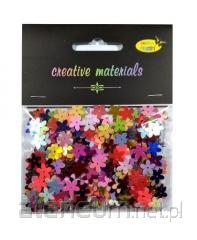 Łamane cekiny średnicy 6 mm z otworkiem w środku. Nadają się zarówno do naszywania, jak i do zdobienia różnych elementów metodą naklejania lub przytwierdzania szpilką. Pakowane w opakowania z eurozawieszką. Opakowanie zawiera 20 gram cekinów w miksie kolorów metalicznych
