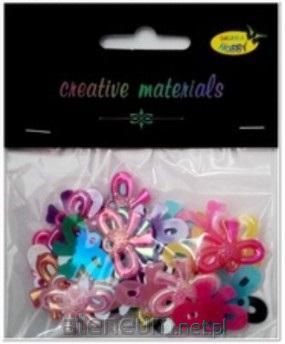 Elementy z tworzywa sztucznego w kształcie kokardek w miksie kolorów opalizujących. Pakowane w opakowania z eurozawieszką zawierające 12 gram elementów. Kod towaru :GH-KP099