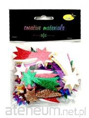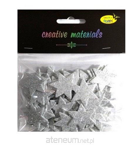 Zestaw elementów w formie gwiazdek z pianki brokatowej wielkości 35 mm , zawierający ok. 50 elementów, pakowany w eleganckie opakowanie z eurozawieszką. Elementy można naklejać na każdą powierzchnię lub używać do innych zdobień. Opakowanie zawiera elementy w kolorze srebrnym.