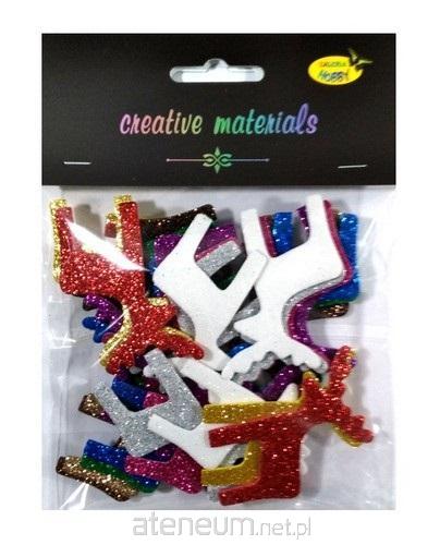 Zestaw elementów w formie renieferów z pianki brokatowej wielkości 70 mm , zawierający ok .30 elementów, pakowany w eleganckie opakowanie z eurozawieszką. Elementy można naklejać na każdą powierzchnię lub używać do innych zdobień. Opakowanie zawiera miks kolorystyczny elementów.