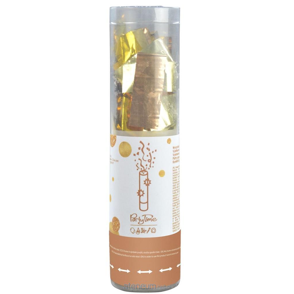 Wyrzutnia konfetti ze złotymi metalizowanymi paseczkami. W dolnej części tuby znajduje się sprężone powietrze, którego uwolnienie po przekręceniu tuby wyzwala gwałtowny wyrzut konfetti z opakowania. Zasięg wyrzutu to 5-6 m. Efektowny gadżet imprezowy na wesele, urodziny, jubileusz, sylwestra.