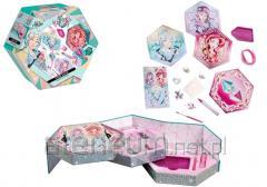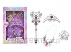 Zestaw biżuterii tiara z różdżką. W zestawie znajduje się także naszyjnik, kolczyki, pierścionek i 2 bransoletki. Wszystko z motywem motyla. Produkt zapakowny w kartonową podstawkę z przezroczystym kloszem. Zabawka dla dzieci od 3 lat. Podane wymiary są wymiarami opakowania.