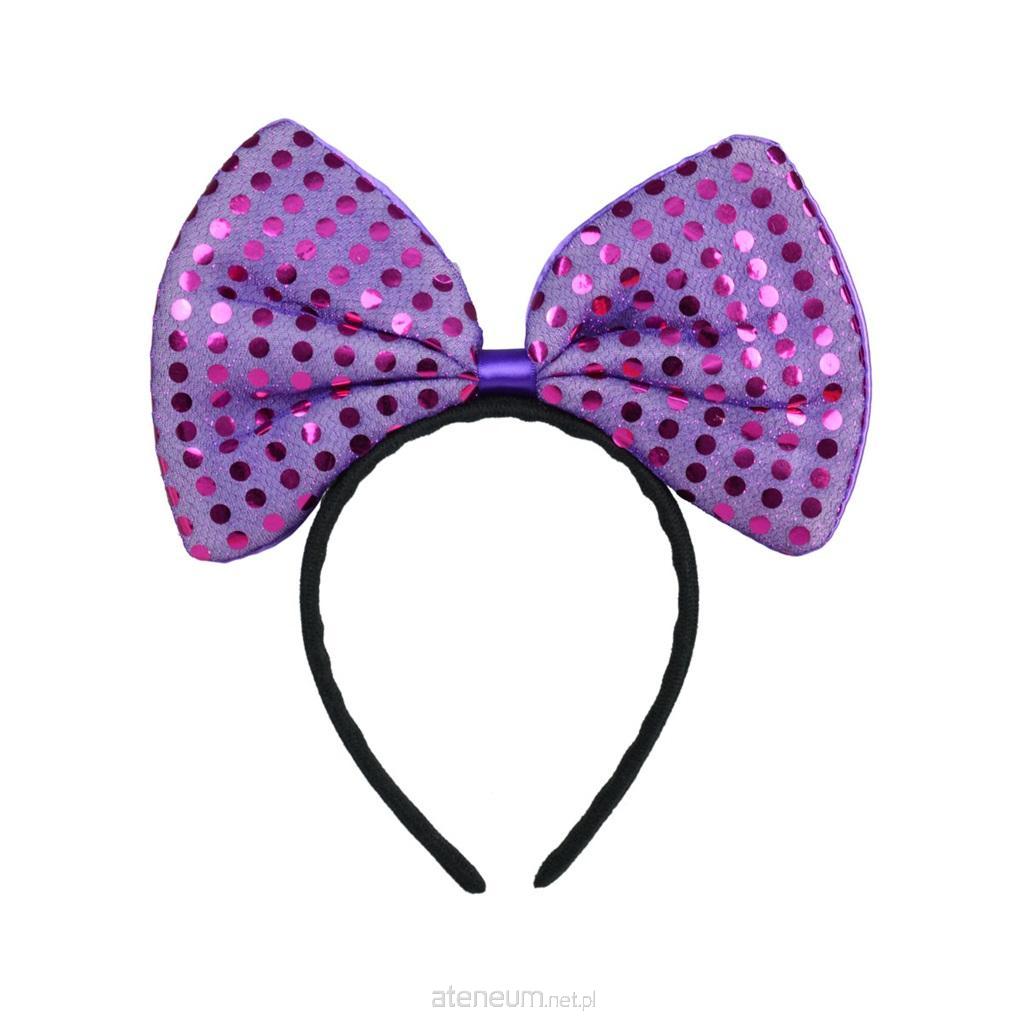Fioletowa kokarda na opasce. Zdobiona jest połyskującymi kropeczkami. Idealne dopełnienie stroju na imprezę urodzinową, wieczór panieński lub zabawę karnawałową. Opaska wygodna w użytkowaniu, rozmiar uniwersalny. Rozmiar kokardy: 20 cm.