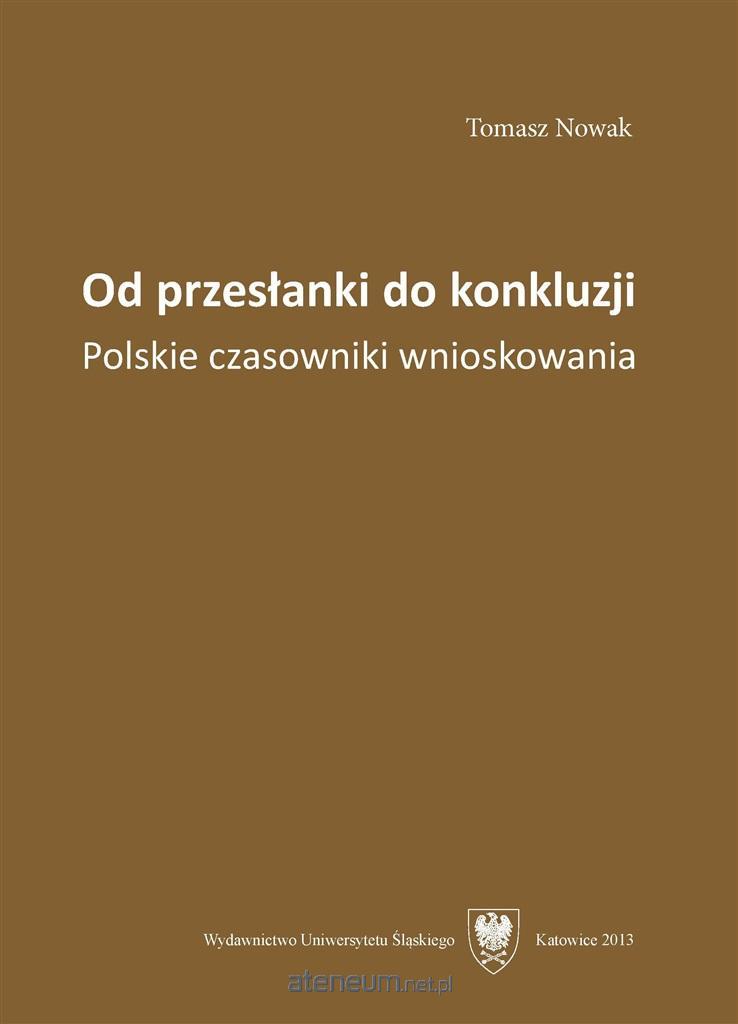 Książka pt. Od przesłanki do konkluzji. Polskie czasowniki wnioskowania jest rozprawą naukową z dziedziny semantyki języka naturalnego, osadzoną w tradycji językoznawstwa polonistycznego. Przedmiot rozważań w tej pracy stanowi zjawisko inferencji, oglądane przez pryzmat swoich podstawowych leksykalnych wykładników - czasowników wnioskowania. Czasowniki wnioskowania są jednymi z najbardziej złożonych i jednocześnie najmniej opisanych wyrażeń języka naturalnego. W tej rozprawie, na przykładzie wnioskowań, podejmuje się m.in. zagadnienie naiwnej i potocznej logiki, jaką skrywa w swoim wnętrzu język, którym w mnogości jego zwykłych użyć posługujemy się wszyscy na co dzień. W książce dyskutuje się m.in. problem tego, w jaki sposób operacje wnioskowania, przebiegając od przesłanek do konkluzji, zasadzają się, kolejno, na wiedzy, myśli i mowie (na marginesie głównego wątku dociekań rozważa się także problem aktywności mentalnej zwierząt i maszyn, jak również kwestię tego, czym w ogóle jest myślenie). Czasowniki wnioskowania charakteryzuje się w tej pracy w relacji do innych wyrażeń, ale też ze względu na to, jakie role odgrywają w abstrakcyjnych zdaniach i jakie pozycje zajmują w konkretnych wypowiedzeniach. Niniejsza rozprawa obejmuje, wyłączając wstęp oraz zakończenie, dwie: dość obszerne, a w każdym razie silnie rozczłonkowane, części: teoretyczną i materiałową, które niejako zapowiada (pilotuje) część historyczna poświęcona dziejom problemu i stanowi badań nad fenomenem wnioskowania.