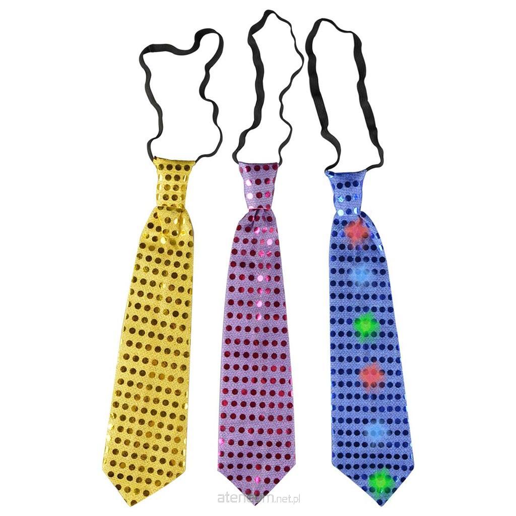 Imprezowy krawat z diodami led. Zdobiony jest połyskującymi kropeczkami. Wewnątrz krawata znajdują się kolorowe diody led zasilane 3 bateriami guzikowymi typu AG10. Baterie nie są dołączone do artykułu. Idealne dopełnienie stroju na imprezę urodzinową, wieczór kawalerski, zabawę karnawałową. Oryginalny gadżet na festiwale i koncerty. Dostępne różne warianty kolorystyczne. Gadżet wyposażony jest w elastyczną gumeczkę zapewniającą wygodne noszenie. Krawat o długości 33 cm.