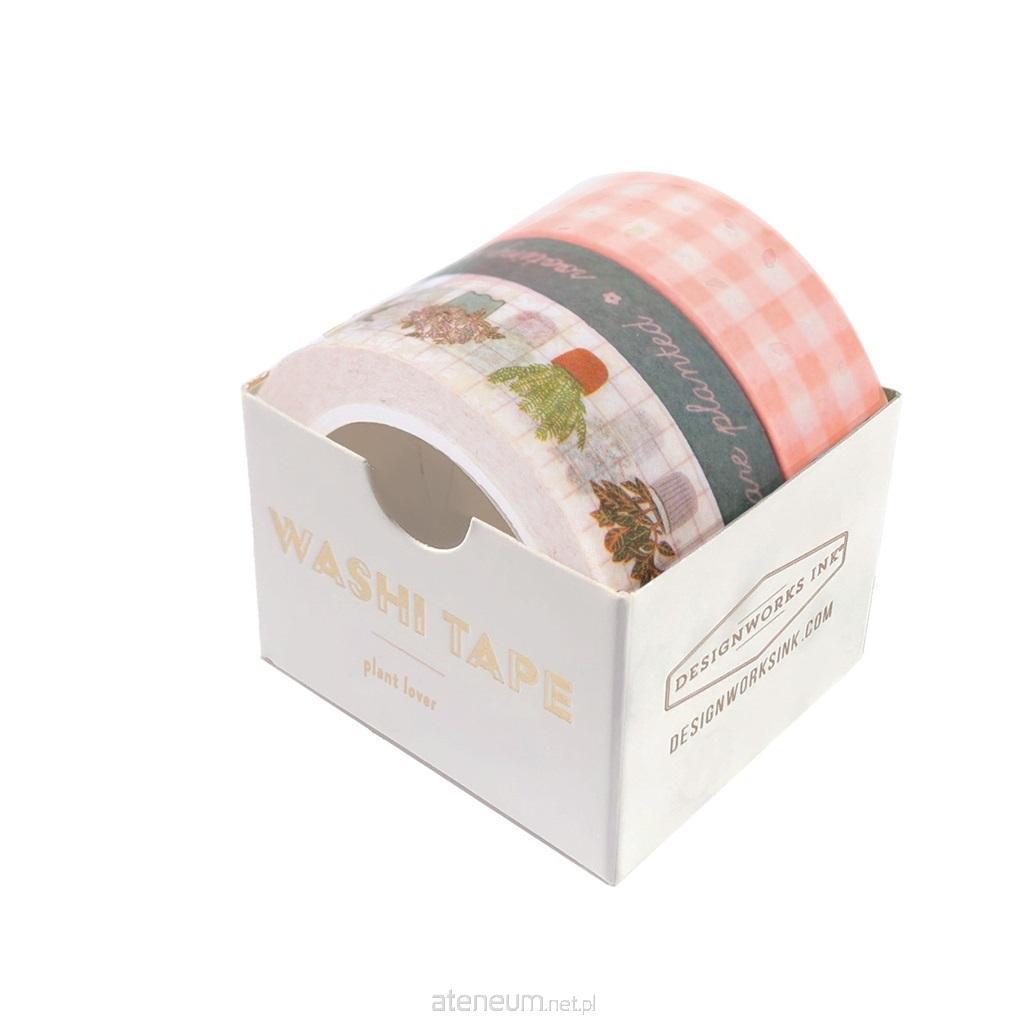 Ten zestaw 3 taśm zawiera rolkę o wzorze różowej kratki, zabawne skrypty i wzór roślin doniczkowych.
