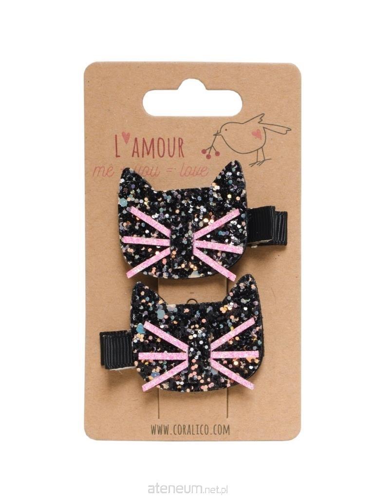 Zestaw klipsów z czarnym brokatowym kotkiem.