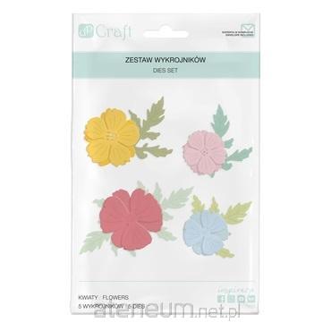 Zestaw 5 wykrojników z motywem kwiatów i liści. Kwiaty można układać warstwowo, tworząc efekt 3D.