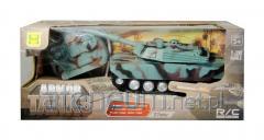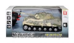 Zabawka to zdalnie sterowany czołg RC, który jest dokładną repliką prawdziwego czołgu. Ma kolorystykę w dominujących kolorach moro, szarym, czarnym i beżowym, co nadaje mu realistyczny wygląd.