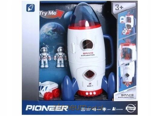Duża rakieta kosmiczna + kosmonauta x2, pojazd kosmiczny, światło i dźwięk. Odkryj fascunujący śwat kosmosu dzięki zestawowi z rakietą. Po naciśnięciu jednego z 3 przycisków rakieta wydaje dźwięki i świecą się światełka. Do zestawu dołączone są 2 figurki oraz pojazd-łazik kosmiczny.